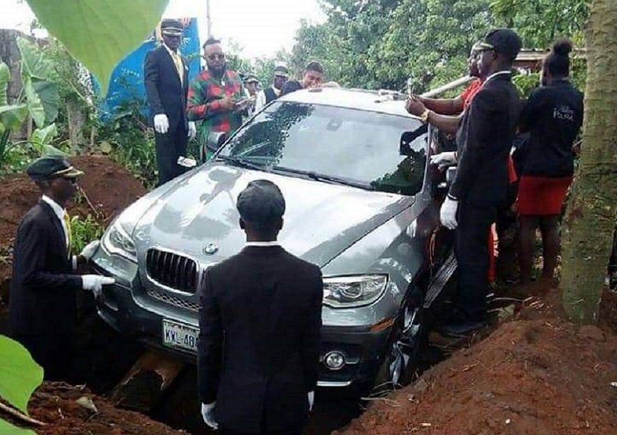 The deceased was put six feet under in a brand new BMW, used as a replacement for a coffin. Nigerians do some bizzare things and the rest of the world has… https://t.co/B8OMyFpjsY